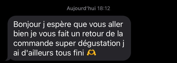 commande au top avec de très bonnes choses et une personne vraiment sympa je recommande sans modération