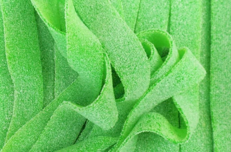 sucre, sirop de glucose-fructose, farine de BLÉ (GLUTEN), eau, acidifiants (acide citrique, acide malique), humectant (sirop de sorbitol), amidon de mais, graisse de palme*, émulsifiant (mono- et diglycérides d'acides gras) arôme naturel, colorant.