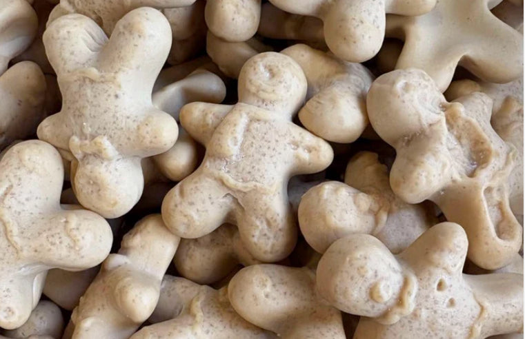 Sucre, sirop de glucose, eau, gélatine, dextrose, humectant (E420), acidifiants (E330, E270), régulateur d'acidité (E325), arômes, agents d'enrobage (E901, E903), colorants : E150a.