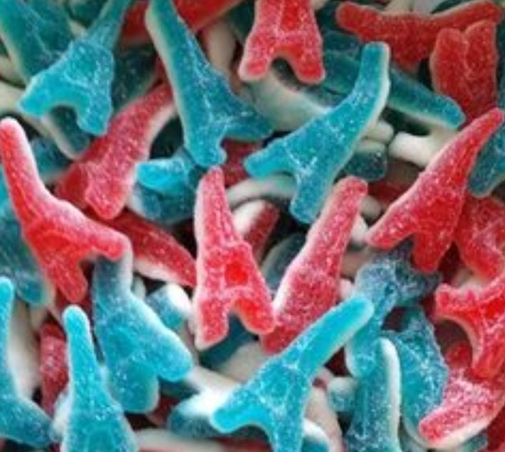 Sirop de glucose, sucre, eau, gélatine de boeuf, amidon modifié de pomme de terre, acidifiants : E330, E270, E296, agent d'enrobage : huile végétale (palme), arômes, colorants : E163, E160a, E129, E133.